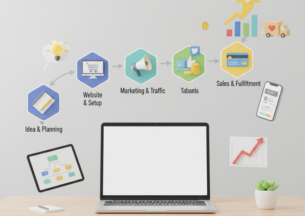النجاح في بناء مشروع إلكتروني يتطلب التفكير بشكل استراتيجي والالتزام بخطوات منطقية. اتبع هذا التسلسل لضمان تأسيس متين لمشروعك: